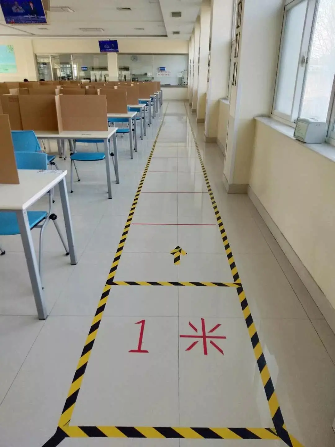 自制万能“格子控”,保持一米排队距离整齐又安全。
